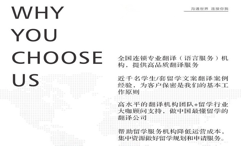 為確保文書質(zhì)量,公司專門抽調(diào)12名專職筆譯人員(大多具有留學(xué)行業(yè)背景并取得國(guó)家人事部翻譯資格證書)進(jìn)行不間斷的專業(yè)培訓(xùn)學(xué)習(xí),以期更深入的了解國(guó)外院校申請(qǐng)的要求、流程以及個(gè)人陳述等關(guān)鍵文書撰寫和翻譯需要注意的要點(diǎn)。我們?cè)谕卣购图?xì)化語(yǔ)言服務(wù)領(lǐng)域的同時(shí)希望能夠利用我們強(qiáng)大的語(yǔ)言人才儲(chǔ)備力量幫助更多的國(guó)際教育機(jī)構(gòu)、海外院校、移民中介機(jī)構(gòu)等等提高共作效率降低運(yùn)營(yíng)成本,最終實(shí)現(xiàn)互利共贏的目標(biāo)。